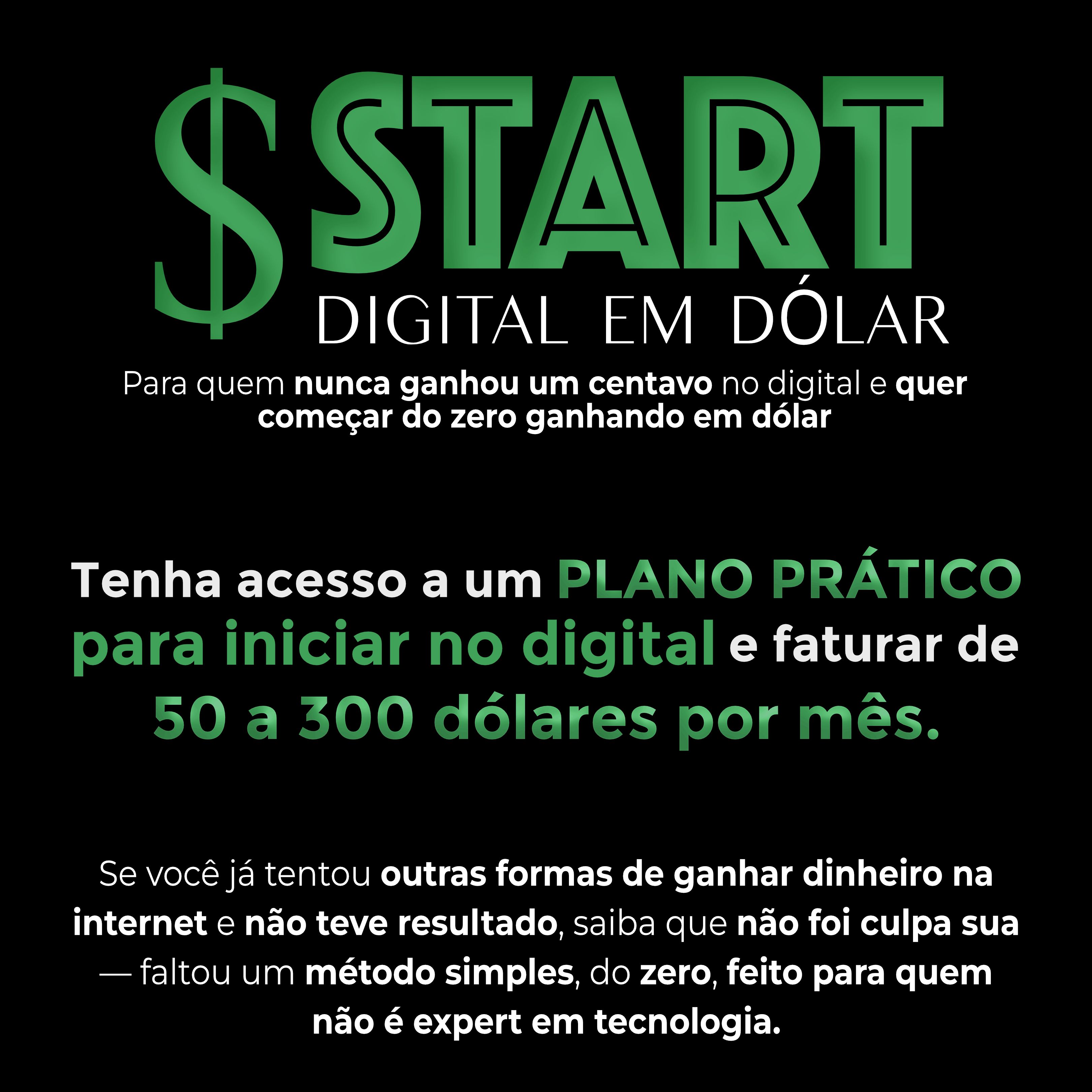 PREPAREI UMA CONDIÇÃO ÚNICA PARA VOCÊ NÃO FICAR DE FORA!Você poderá fazer parte da mentoria Start Digital em Dólar com UMA CONDIÇÃO EXCLUSIVA POR TEMPO LIMITADO e começar a ver os resultados nos próximos dias!