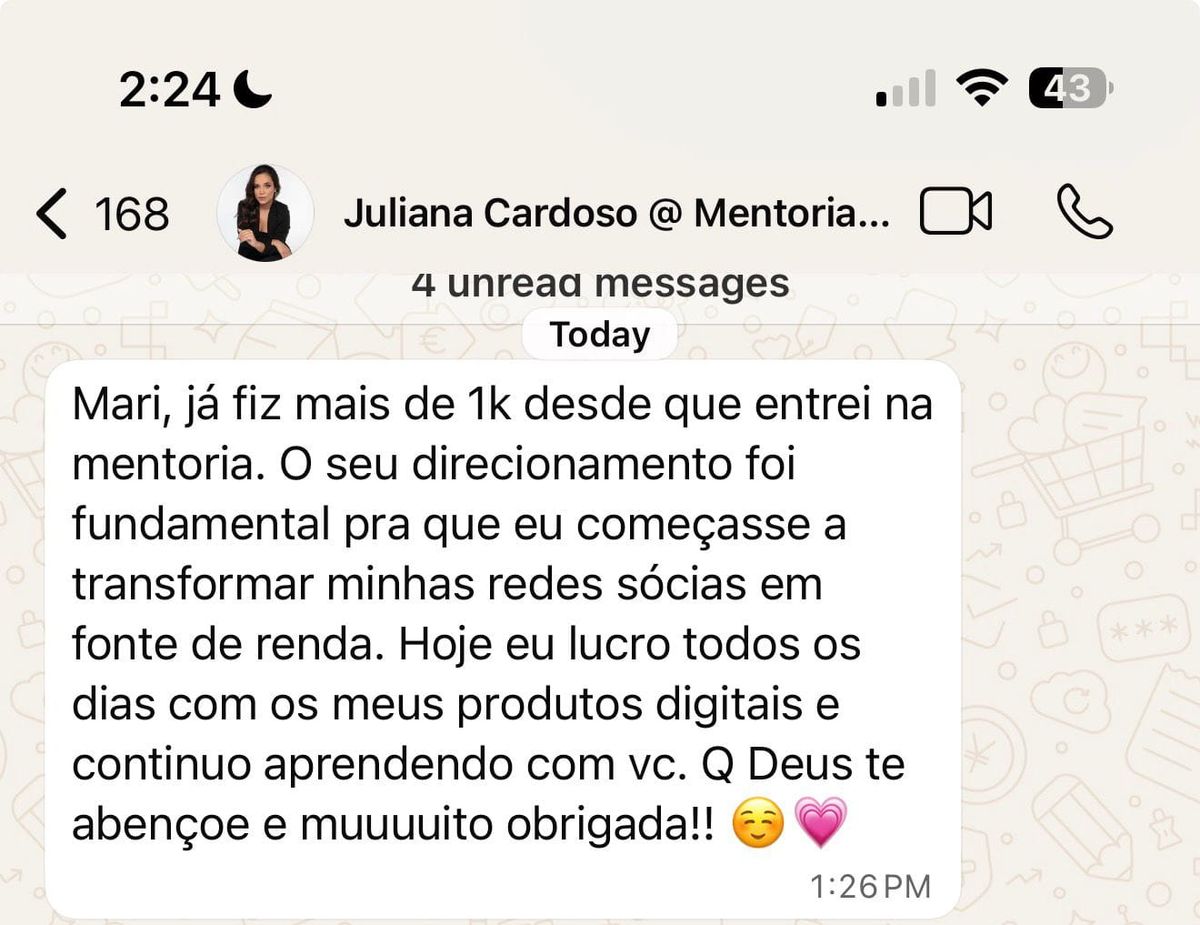 Juliana já faturou mais de R$1.000 desde que entrou no treinamento e lucra todos os dias com seus produtos digitais.
